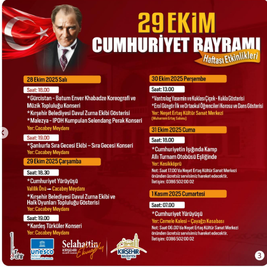 Tüm hemşehrilerimizi, Cumhuriyetimizin 102. yılını gururla kutlayacağımız programlarımıza bekliyoruz. [..]